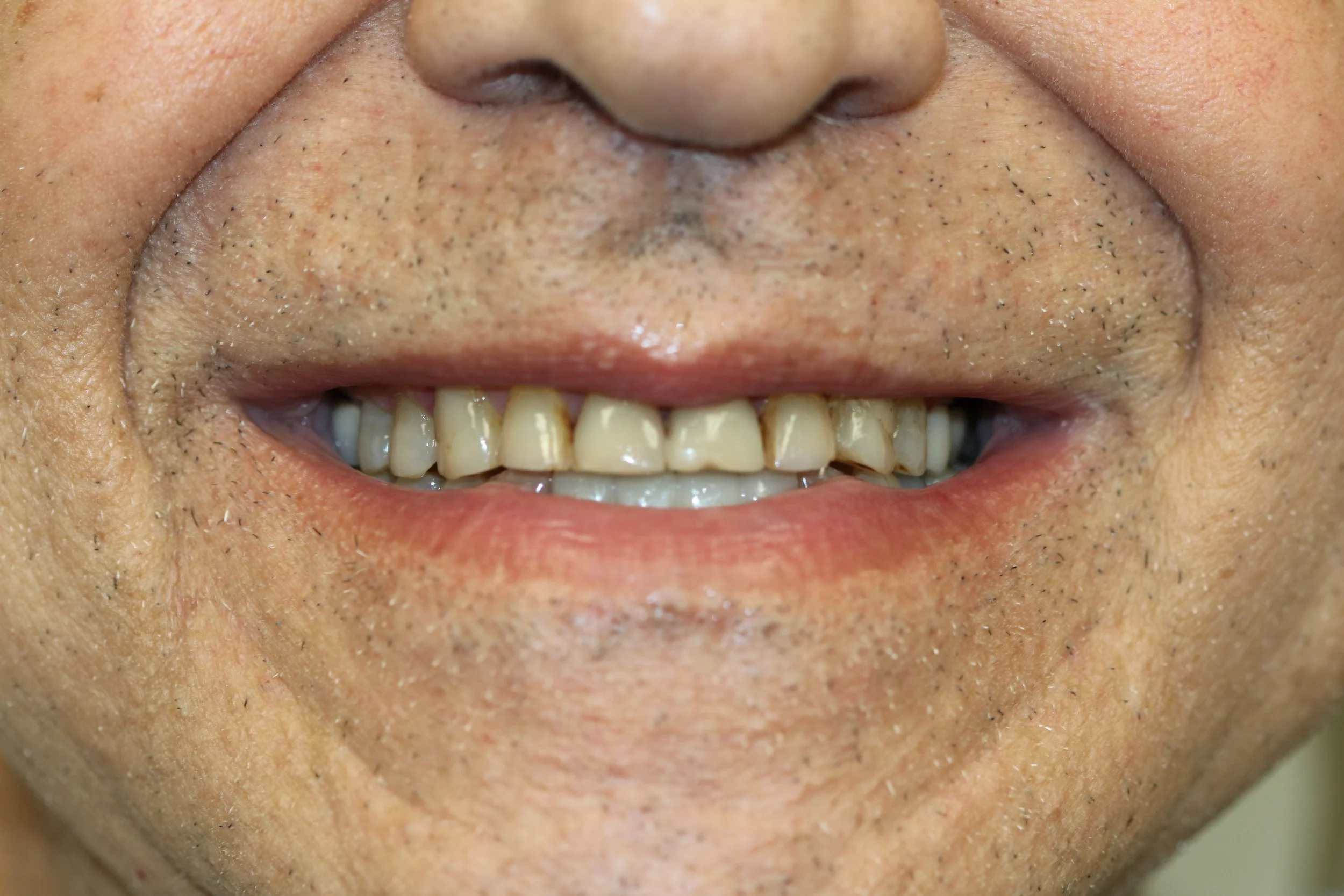 AFTER: complete upper fixed porcelain bridge to restore full function and beautiful smile
